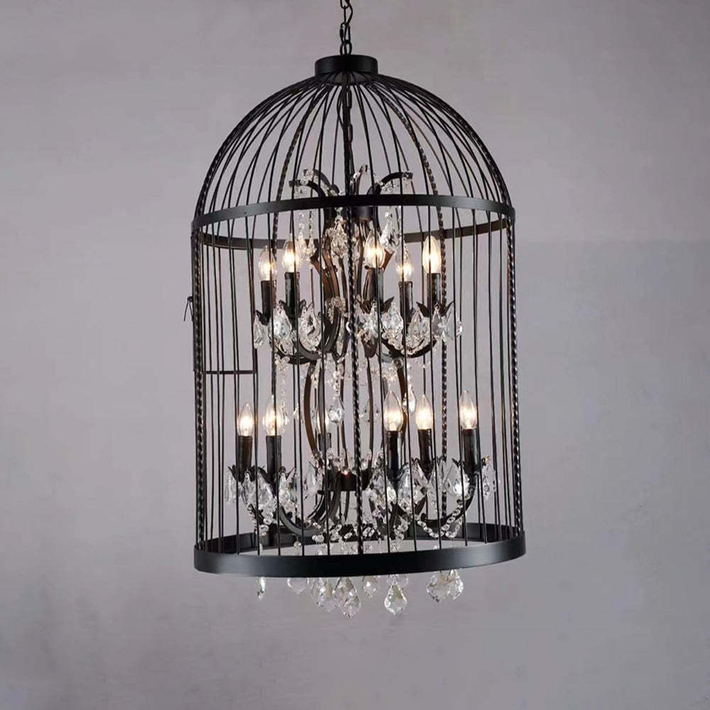 Cooley Retro LED Pendelleuchte Vogelkäfig Schwarz/Rost Wohn/Schlafzimmer Metall&Kristall 4/8/12-Flammig